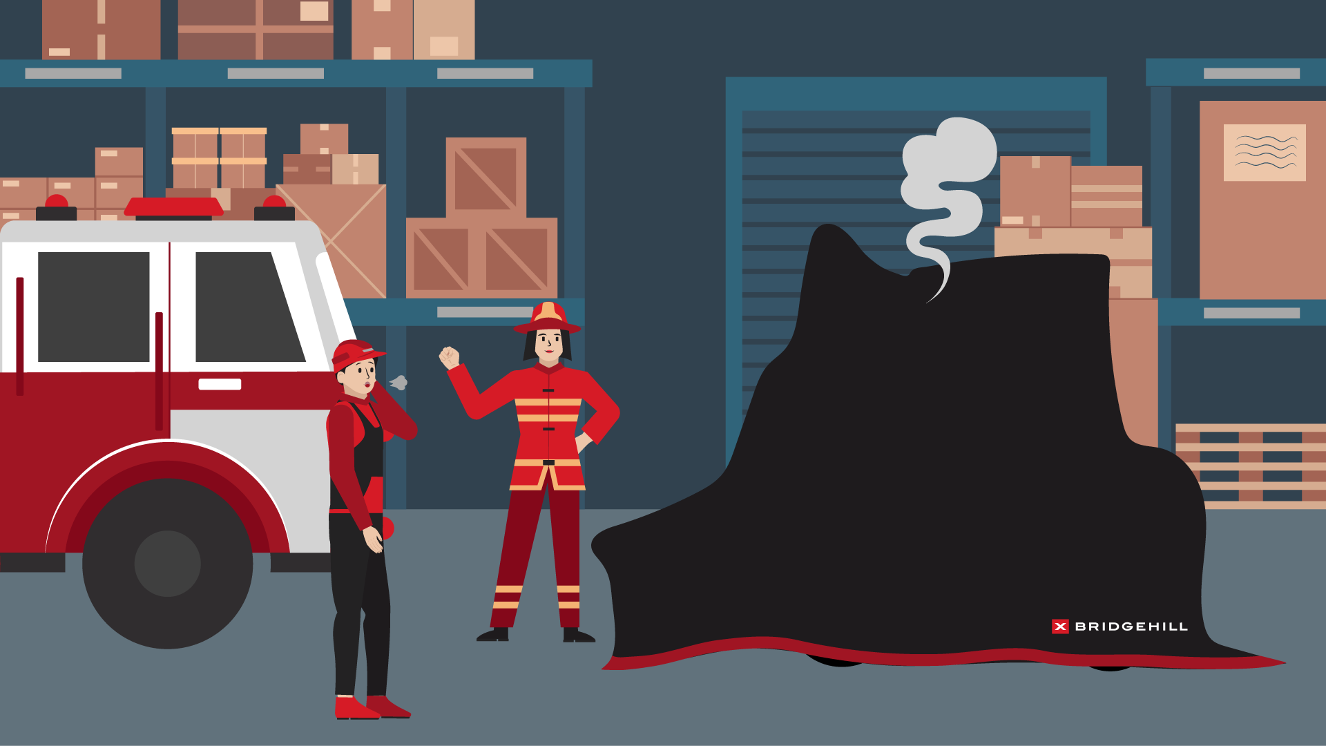 Wenn in einem Lagerhaus ein Feuer ausbricht, ist es sehr wichtig, dass Feuer und Rauch sofort isoliert werden. Dadurch wird verhindert, dass Ihre Lagerware beschädigt oder gar unbrauchbar wird. Es verhindert auch eine weitere Ausbreitung des Feuers. Mit einer Löschdecke für Gabelstapler von Bridgehill können Sie Rauch und Feuer innerhalb von Sekunden isolieren, ohne zusätzlichen Schaden zu verursachen. Dieser zusätzliche Schaden tritt beispielsweise häufig beim Einsatz von Wasser-, Schaum- und Pulverlöschern auf.